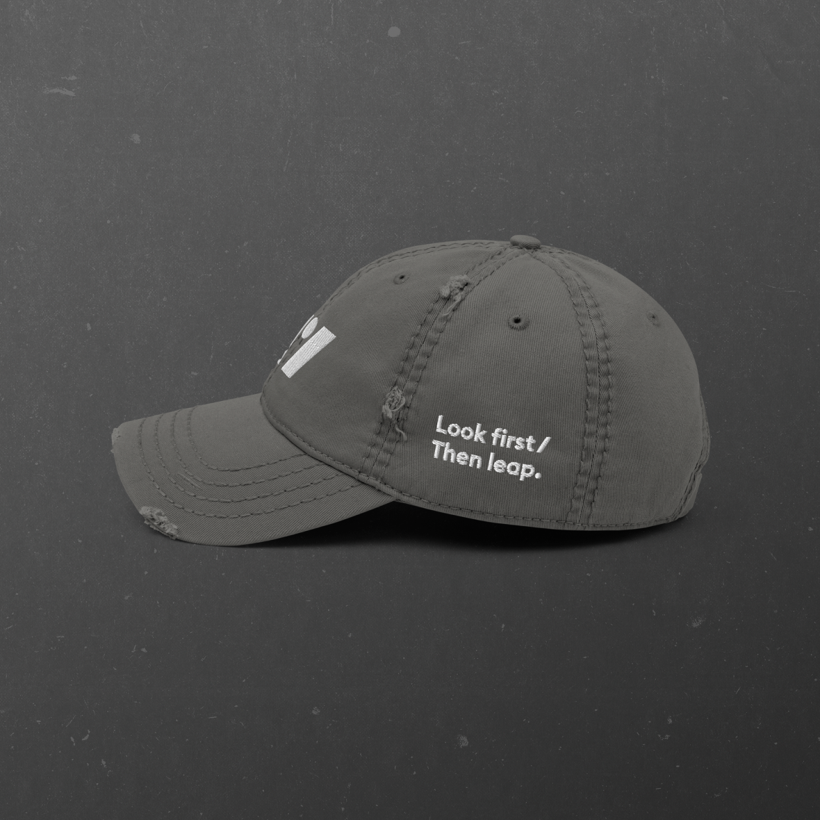 With this distressed-look cap, get the perfect look for traders who wear their market scars with pride. Featuring the bold TradingView logo front and center and the motto Look First / Then Leap stitched to the side, this cap is a nod to smart, calculated moves in an understated way.